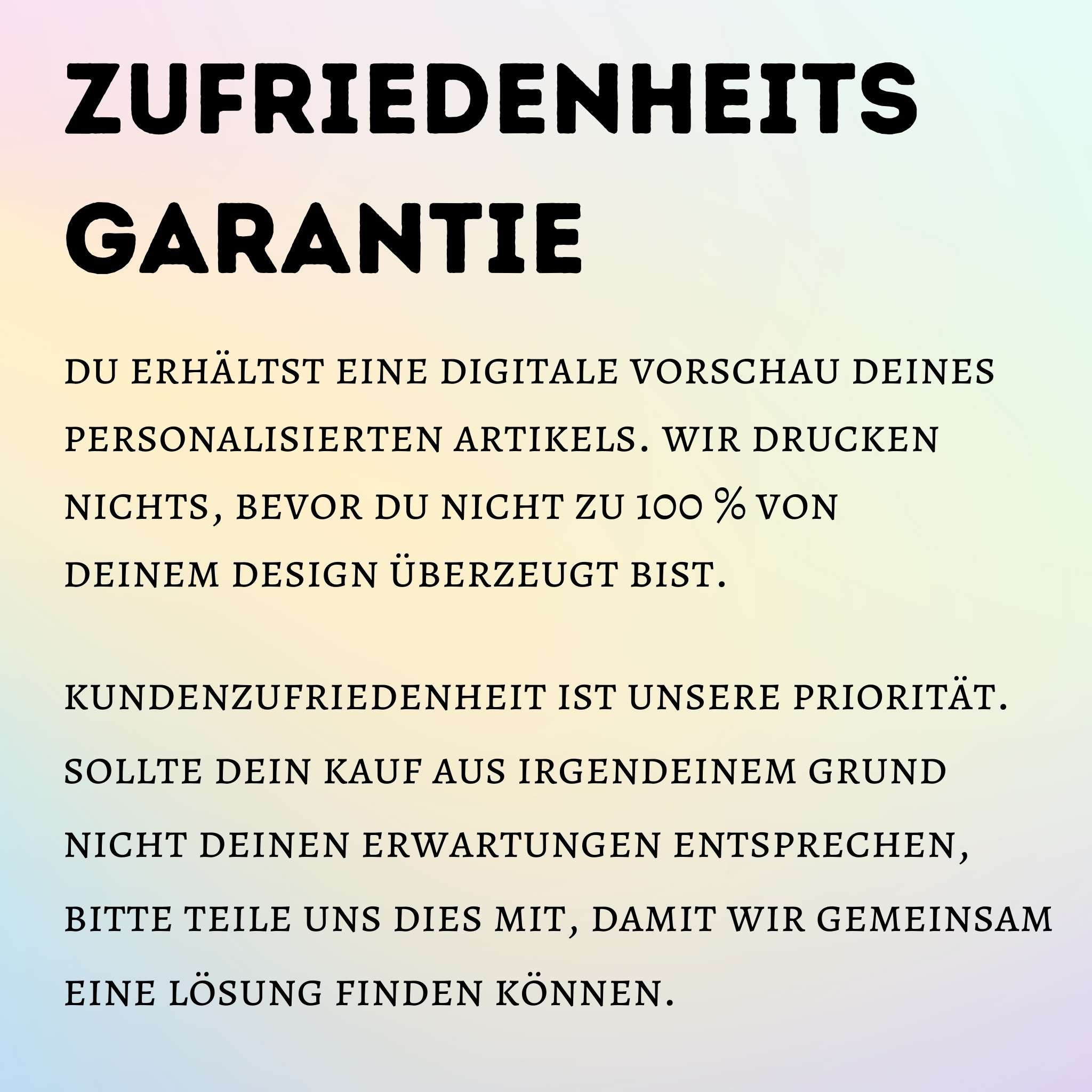 Da es sich um ein personalisiertes Produkt handelt, sind Rückgaben nur bei Produktionsfehlern möglich. Bei Fragen kontaktiere uns gerne.