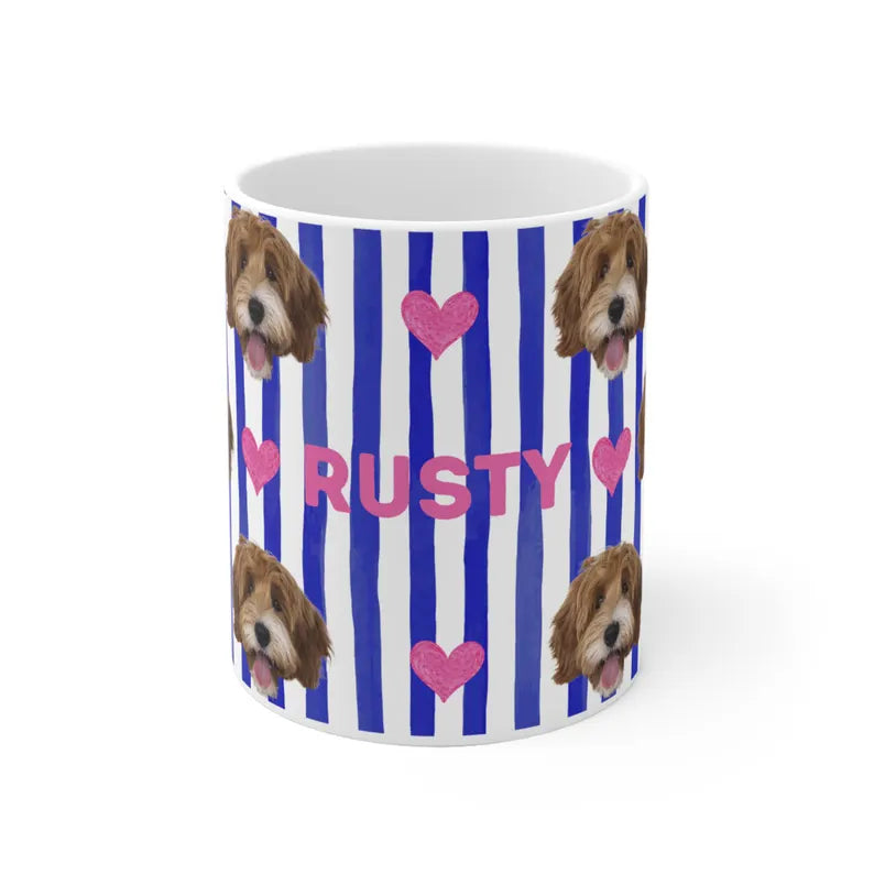 Personalisierte Fototasse mit deinem Haustier und Namen - Blue Stripes Allover