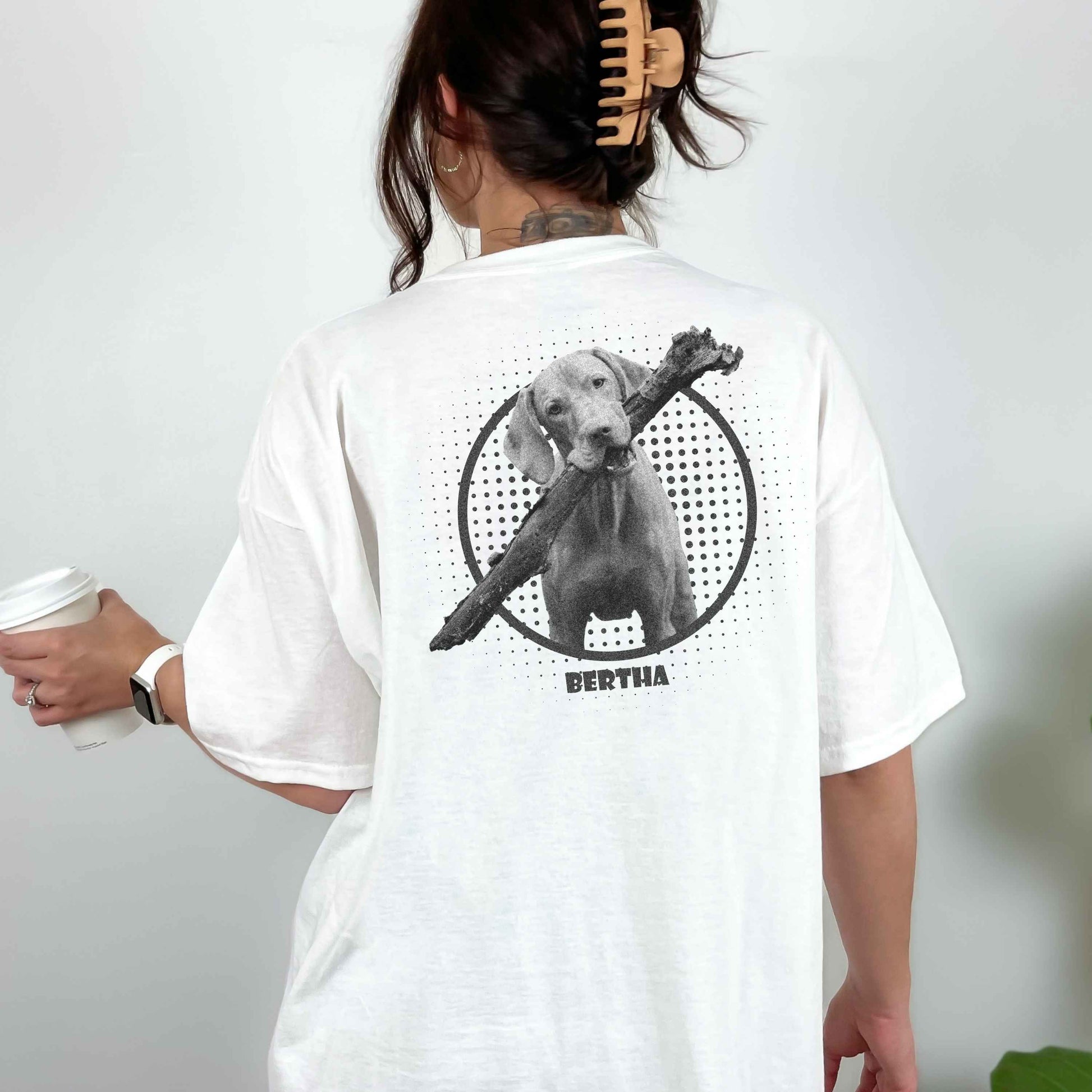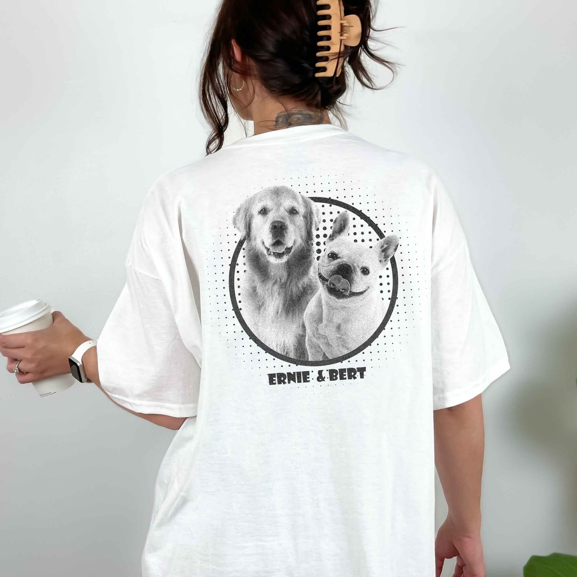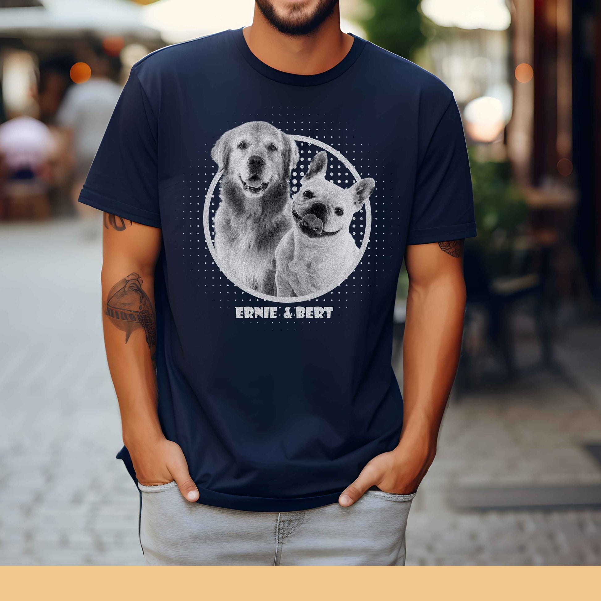 Lade einfach dein Lieblingsfoto deines Haustieres hoch und füge den Namen hinzu. Wir drucken dein Motiv in hochwertiger Qualität auf das T-Shirt.