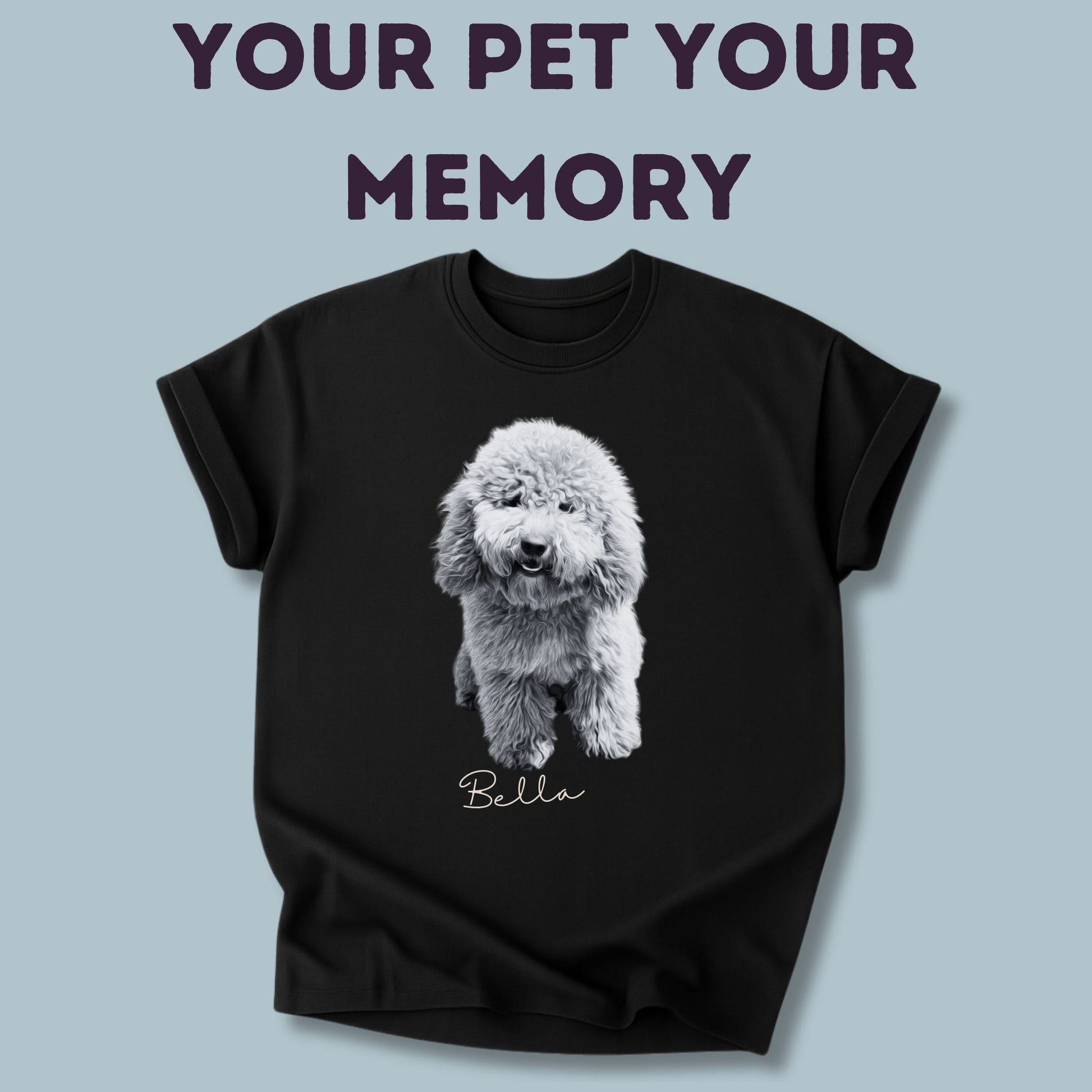 Lade einfach dein Lieblingsfoto deines Haustieres hoch und füge den Namen hinzu. Wir drucken dein Motiv in hochwertiger Qualität auf das T-Shirt.