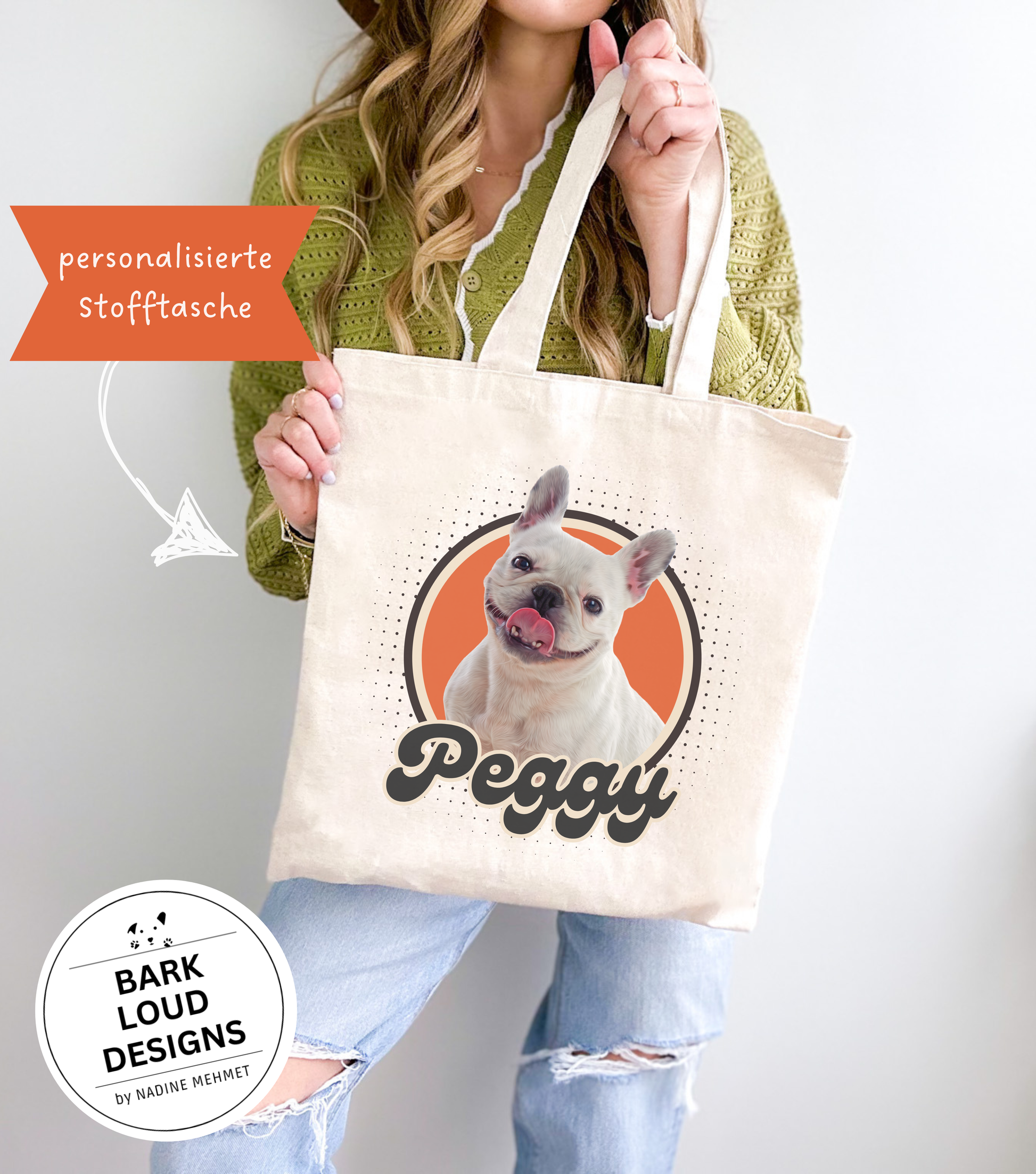 Personalisierter Stoffbeutel mit Foto und Name von deinem Haustier